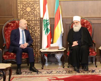 > سماحة شيخ العقل زار السفارة السعودية مهنئناً بذكرى التأسيس والتقى وفداً من "القوات اللبنانية" موفداً من جعجع حاصباني: نحرص على إتمام ... > وفد من كفرقطرة زار سماحة شيخ العقل متضامناً أبي المنى: لوعي المخاطر التي تمرّ بها المنطقة والطائفة > المجلس المذهبي يرد على المضللّين ويدعو السلطات القضائية والأمنية المختصّة للقيام بواجبها الوطني المسؤول > سماحة شيخ العقل يهنئ السعودية بذكرى "يوم التأسيس": نقدّر العلاقة التاريخية والأخوية ودعمها لبنان > سماحة شيخ العقل شارك في افطار دار الفتوى بحضور رئيس الجمهورية وأركان الدولة > سماحة شيخ العقل إتصل بالحريري والتقى المطران عودة وزوّاراً > الشيخ العطّار يشارك في مؤتمر الاخوة الإنسانية ممثلا سماحة شيخ العقل > سماحة شيخ العقل تلقّى من وفد المجلس الإسلامي الشيعي الأعلى دعوة للإفطار وبحث مع اللجنة العليا للأخوّة الإنسانية في الإمارات ... > سماحة شيخ العقل في لقاء ديني في عبيه: للتمسّك بنهجنا التاريخي والتوحيدي وبهويتنا المعروفية وبالمصير المشترك > سماحة شيخ العقل في ذكرى الشحار: نؤكد الرفضِ المطلَقِ للهويات المصطَنعة جنبلاط: التمسك بالمصالحة خيارا نهائيا لا رجعة عنه