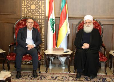 > سماحة شيخ العقل عرض الاوضاع العامة مع الوزير الرسامني والنائب السابق الخليل ورئيس الأركان > سماحة شيخ العقل عرض مع جنبلاط اوضاع الطائفة وشؤونا عامة > سماحة شيخ العقل بحث مع ناصر تطورات المرحلة والتقى ندّاف ووفوداً وشخصيات > سماحة شيخ العقل اتصل بالمسؤولين مهنئاً: نتمنى أن يحقق العام الجديد الاستقرار للوطن وتطلّعات المسؤولين للنهوض بالدولة > سماحة شيخ العقل مهنئاً بالأعياد: للتطلع بأمل ورجاء لقيام وطننا من كبوته > تواصل بين سماحة شيخ العقل وجنبلاط واتفاق على لقاء قريب > سماحة شيخ العقل اطمأن إلى صحة الشيخ الخطيب والتقى وفودا وشخصيات > سماحة شيخ العقل بحث مع وفد من المطارنة الموارنة نتائج زيارة البابا لاوون للبنان وموضوع تنقية الذاكرة الوطنية > سماحة شيخ العقل رعى مناسبة توقيع كتاب الشيخ سليقا في الفرديس: "العدوان لم يتغلّب على صروحِ الحياة والثقافة لا تموت" ... > سماحة شيخ العقل عرض واقع مرفأ بيروت مع حريز والتقى زوّاراً