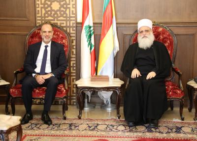 > سماحة شيخ العقل التقى عساف وناصر ورئيس البعثة العسكرية الايطالية الثنائية في لبنان > سماحة شيخ العقل التقى أرسلان في خلدة وزار قرى في غرب عاليه واستقبل شخصيات > سماحة شيخ العقل التقى امين سر مجلس نقابة المحامين وزوّارا وشخصيات > ندوة حول دمج القيم الروحية والاخلاق في التعليم سري الدين ممثلا شيخ العقل: لتبنّي الدولُ استراتيجياتٍ تجعلُ الأخلاقَ مِحوراً مركزياً في ... > سماحة شيخ العقل عرض الاوضاع العامة مع الوزير الرسامني والنائب السابق الخليل ورئيس الأركان > سماحة شيخ العقل عرض مع جنبلاط اوضاع الطائفة وشؤونا عامة > سماحة شيخ العقل بحث مع ناصر تطورات المرحلة والتقى ندّاف ووفوداً وشخصيات > سماحة شيخ العقل اتصل بالمسؤولين مهنئاً: نتمنى أن يحقق العام الجديد الاستقرار للوطن وتطلّعات المسؤولين للنهوض بالدولة > سماحة شيخ العقل مهنئاً بالأعياد: للتطلع بأمل ورجاء لقيام وطننا من كبوته > تواصل بين سماحة شيخ العقل وجنبلاط واتفاق على لقاء قريب