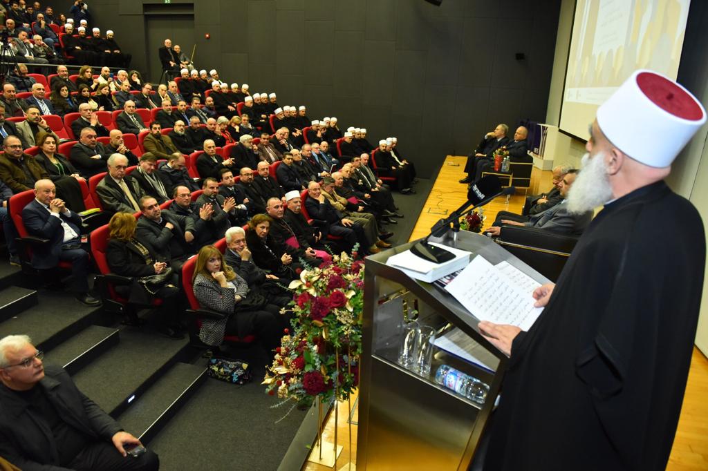 وبعد كلمات لكل من، رئيس الجامعة الدكتور سليم دكاش والوزير السابق طارق متري وعضو لجنة الحوار الاسلامي المسيحي الاستاذ محمد السماك ومؤلف الكتاب د. سلامة ومديرة المعهد د. رولا تلحوق، وتقديم من الإعلامية ألديكو إيليا، ألقى سماحة شيخ العقل كلمة قال فيها: