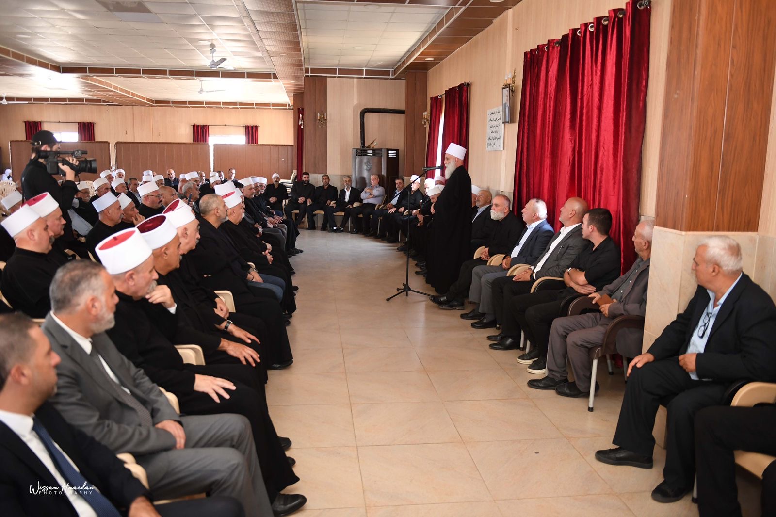 وألقى سماحة الشيخ أبي المنى كلمةً شكر، ومشيرا الى "الدور الوطني والسياسي للطائفة، الذي يمنحها قيمتها التاريخية والروحية، فهي غنية بتراثها ووحدتها، جامعة لا مفرّقة، ومتمسكة بالشراكة الروحية، التي هي السبيل لبناء المجتمع وصون التماسك الوطني، مؤكّدًا أن مجد الموحّدين لا يُقاس بالعدد، بل بالدور والثبات على القيم والعقيدة، وبالتمسك بالهوية الوطنية العربية والإسلامية الصحيحة".