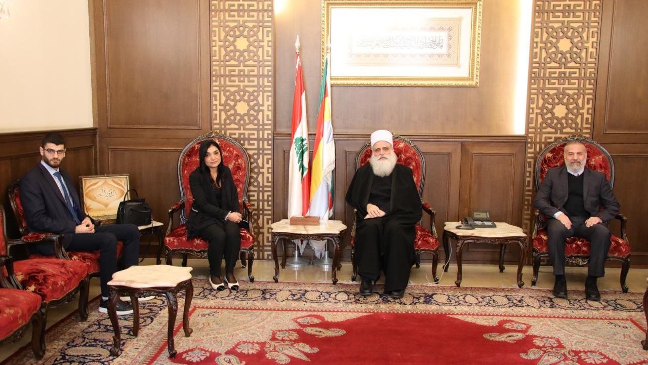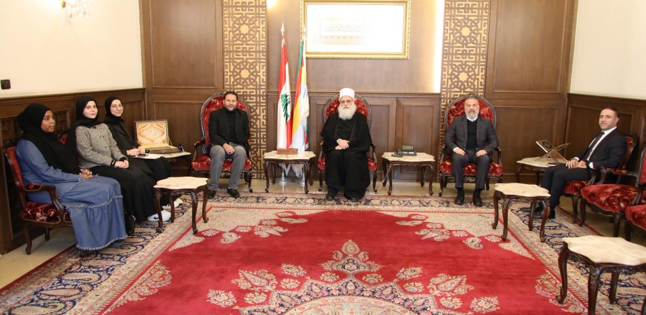 والتقى سماحة الشيخ ابي المنى وفداً ايضا من "الهيئة العربية لبناء المواطن والأوطان" برئاسة احمد عبد الله الشاويش، ضمّ: ذكريات عكاوي، حنان فرحات، وآية حزينة، وعرّف الوفد بالهيئة ورسالتها وأهدافها، والدور الذي تضطّلع به في تعزيز القيم الإنسانية والاجتماعية والثقافية، الى جانب سبل تعزيز العلاقات الثقافية والإنسانية، والعمل المشترك من أجل بناء أجيال واعية، تسهم في نشر الوعي الثقافي والفكري، وتعزيز الهوية والتراث، وترسيخ قيم العلم والإبداع والمحبة والسلام.