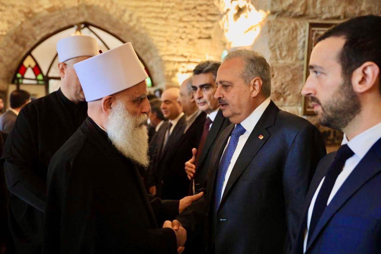 وكان في استقبال سماحة الشيخ أبي المنى والوفد المرافق رئيس الحزب "الديمقراطي اللبناني" الامير طلال أرسلان ونجله الامير مجيد والاميرة خولا، وشخصيات ومسؤولين في قيادة الحزب الديمقراطي.