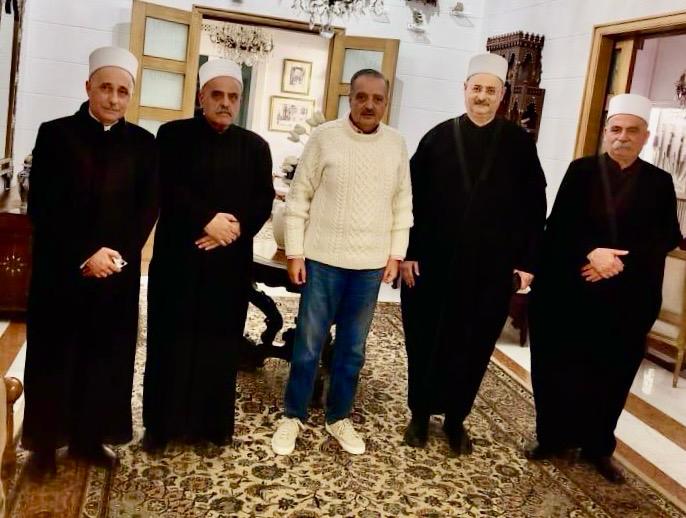 وكلّف سماحة الشيخ ابي المنى وفدا من قبل مشيخة العقل لزيارة، كلاً من الزعيمين الاستاذ وليد "بك" جنبلاط والأمير طلال أرسلان، لنقل تحيات سماحته، وتأكيد حرصه على تكثيف التواصل والتشاور، في ظل الأوضاع الحرجة التي تمر بها البلاد والمنطقة. كما شكر الوفد لهما مجدداً باسمه مكرمتهما المقدّرة، لاسترداد منزل الأمير السيد عبدالله التنوخي في عبيه، وأطلاعهما على التحضيرات لمناسبة تنوي مشيخة العقل اقامتها في بلدة عبيه بهذا الخصوص. وضم الوفد المشايخ: عصمت الجردي رئيس اللجنة الدينية في المجلس المذهبي، وفادي العطار رئيس لجنة التواصل والعلاقات العامة، محمود فرج وكيل وقف الأمير السيّد، وكمال أبي المنى معاون سماحة شيخ العقل، علما انه شارك في الزيارة الأولى القاضي الشيخ غاندي مكارم.